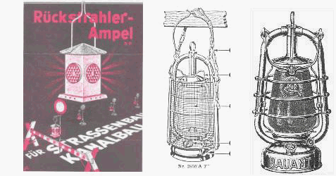 Battery operated road construction warning lamps came up in the fifties. This lamps were at first very expensive in comparison to hurricane lanterns at that time, so that they only were used for pre warning and to safe special places of risk.