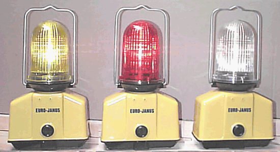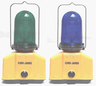 Horizont Euro-Janus - mit Monoplan-Rundumoptik in gelb, rot, klar, grün oder blau, Blink- u. Dauerlicht (umschaltbar) mit Dämmerungs-Automatik, konventioneller 2-Schienen-Trägereinsatz, Secura-Halterung.
